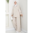 Tesettür İkili Takım Uzun Tunik Bol Paça Pantolon 4006-bej Bej
