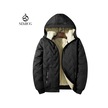 Kapüşonlu, Polar Astarlı, Kalınlaştırılmış, Sıcak Kuzu Yününden Erkek Pamuklu Dolgulu Mont Siyah