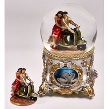 Kar Küresi Antik Klasik Büyük 120 Mm El Boyaması,müzikli Kendinden Üflemeli, Vespalı Sevgili Çift