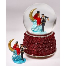 Kar Küresi Gonca Buket Büyük 100 Mm El Boyaması, Müzikli Kendinden Üflemeli, Ay Işığında Kemancı