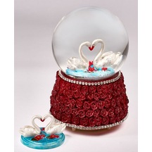Kar Küresi Gonca Buket Büyük 100 Mm El Boyaması, Müzikli Kendinden Üflemeli, Kuğu