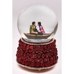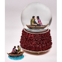 Kar Küresi Gonca Buket Büyük 120 Mm El Boyaması, Müzikli Kendinden Üflemeli, Sandalda Sevgililer