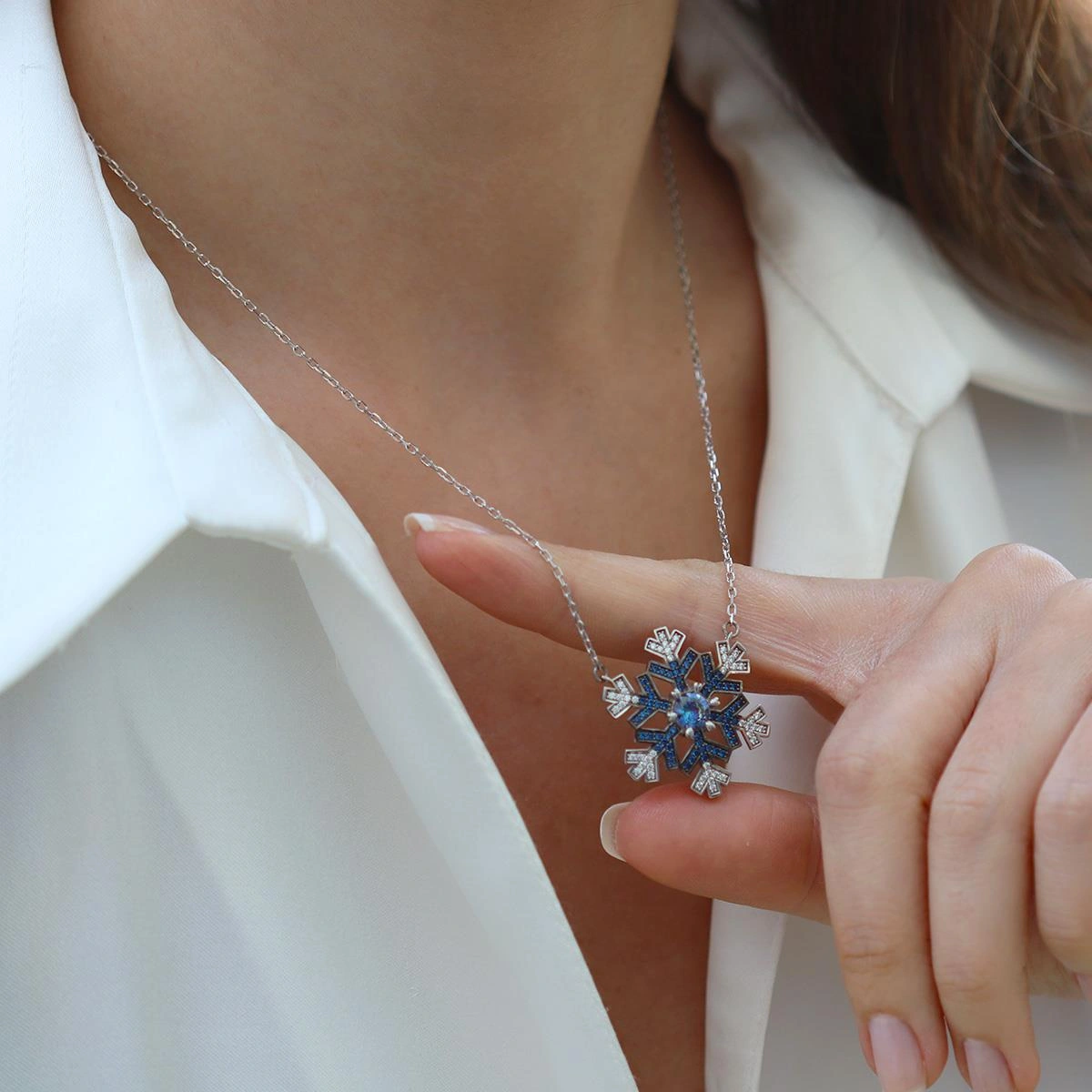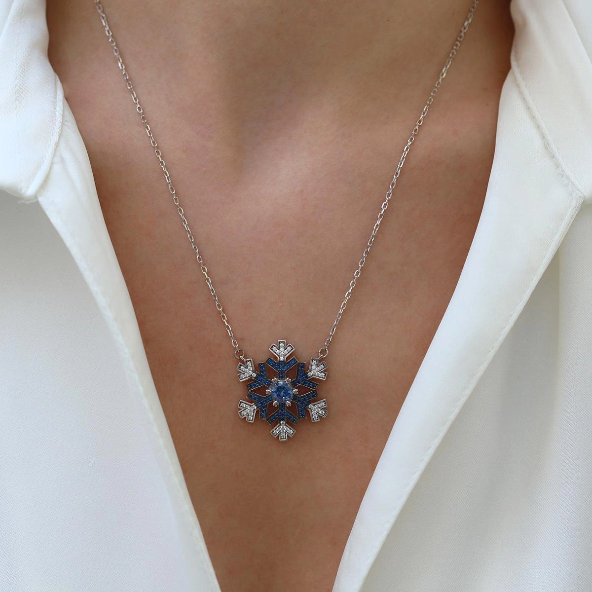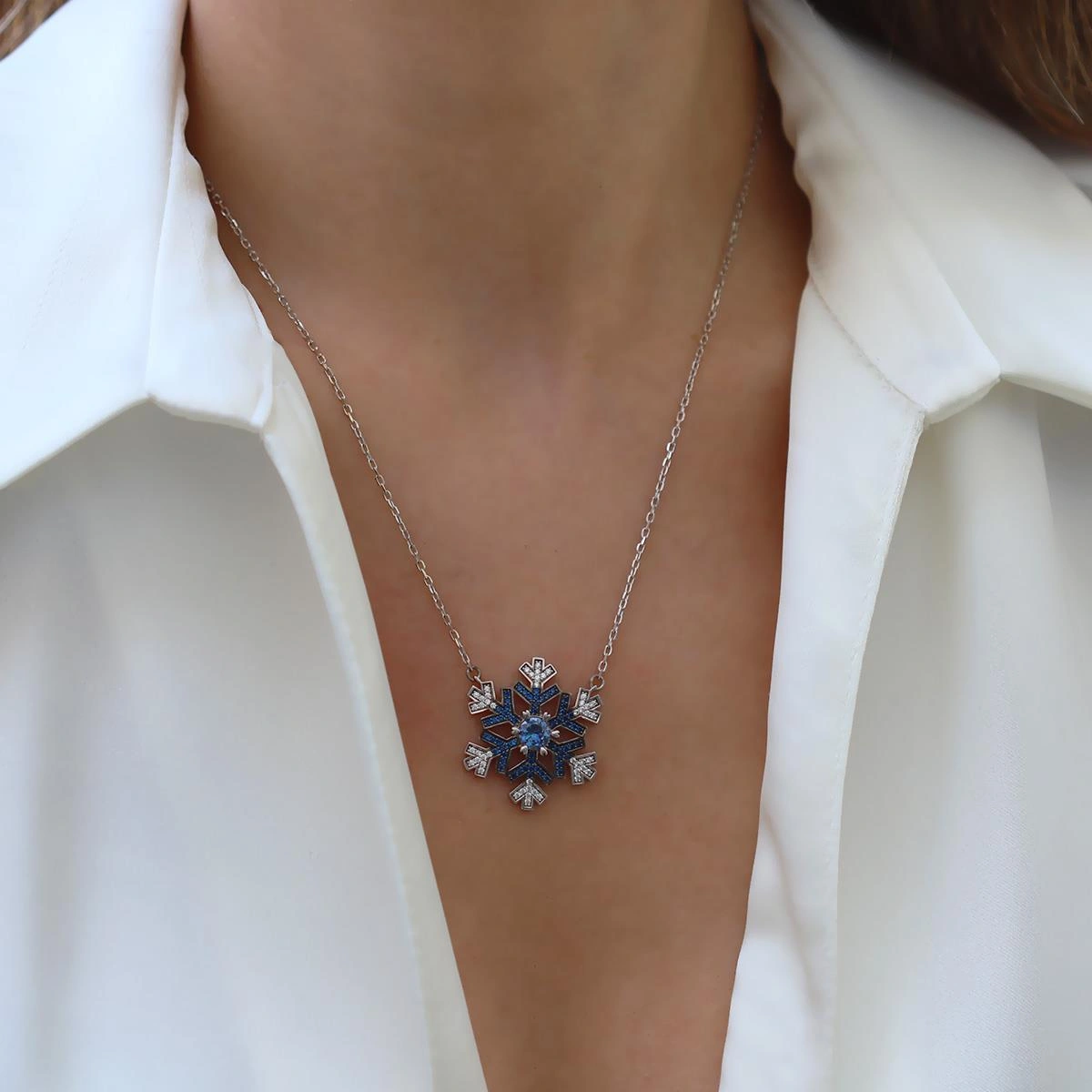 Kar Tanesi Lacivert Taşlı Gümüş Kolye Gümüş