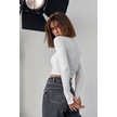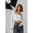 Kara Yaka Uzun Kollu Crop - Beyaz Karışık