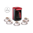 Sade ve Türk kahvesinin bol köpüklü yapıyor ama maalesef sütlü kahve 4 fincanın üstü yapıldığında taşıma ihtimali yüksek ayrıca sütlü kahvede cezvesi bayağı bir tutuyor temizlemek uğraştırıyor