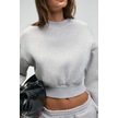 KARALIS Kadın Pamuklu Bisiklet Yaka Crop Grimelanj Sweatshirt