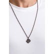 Karbon Fiber Detaylı 65 Cm Çelik Kolye Kahverengi