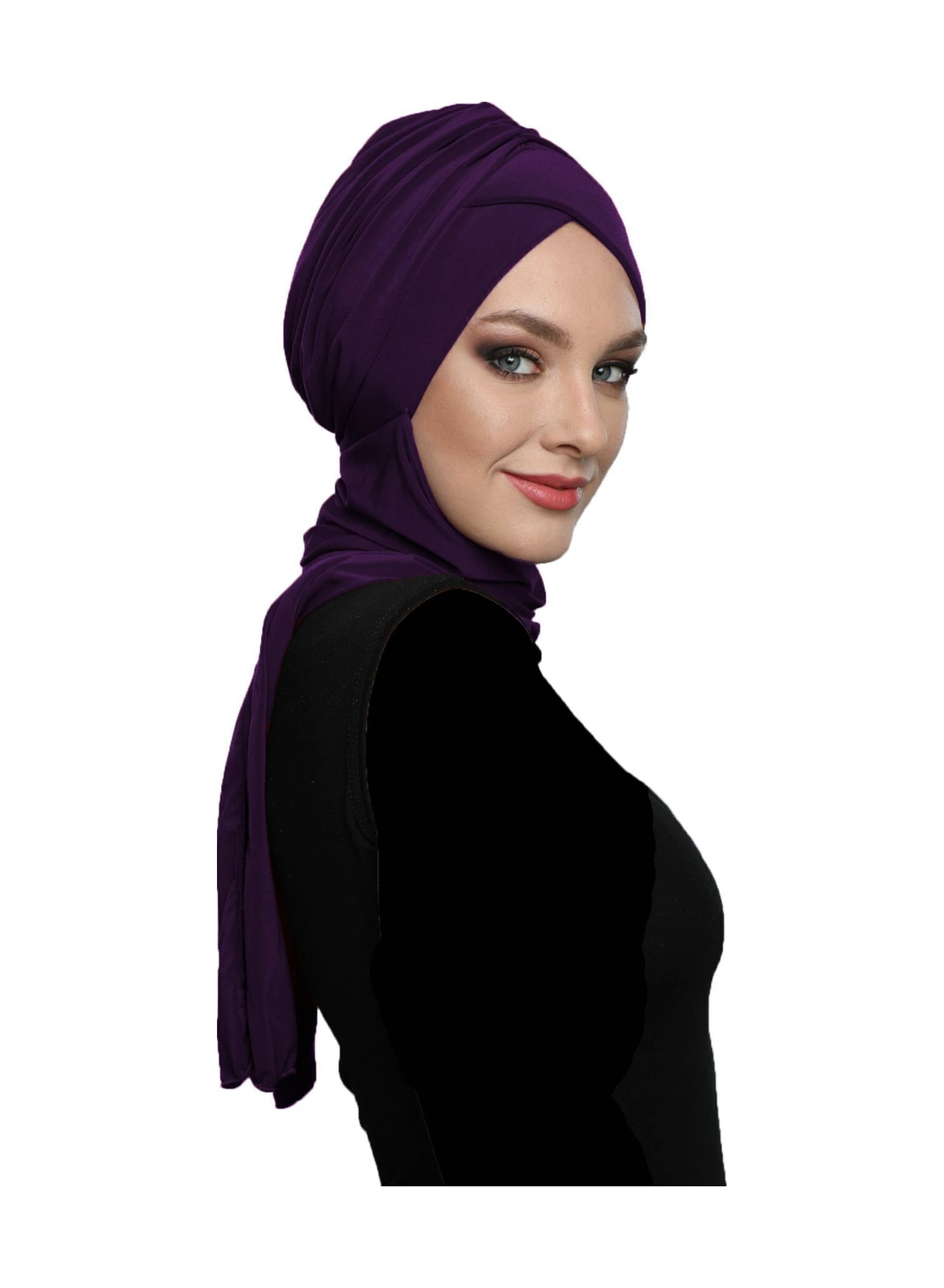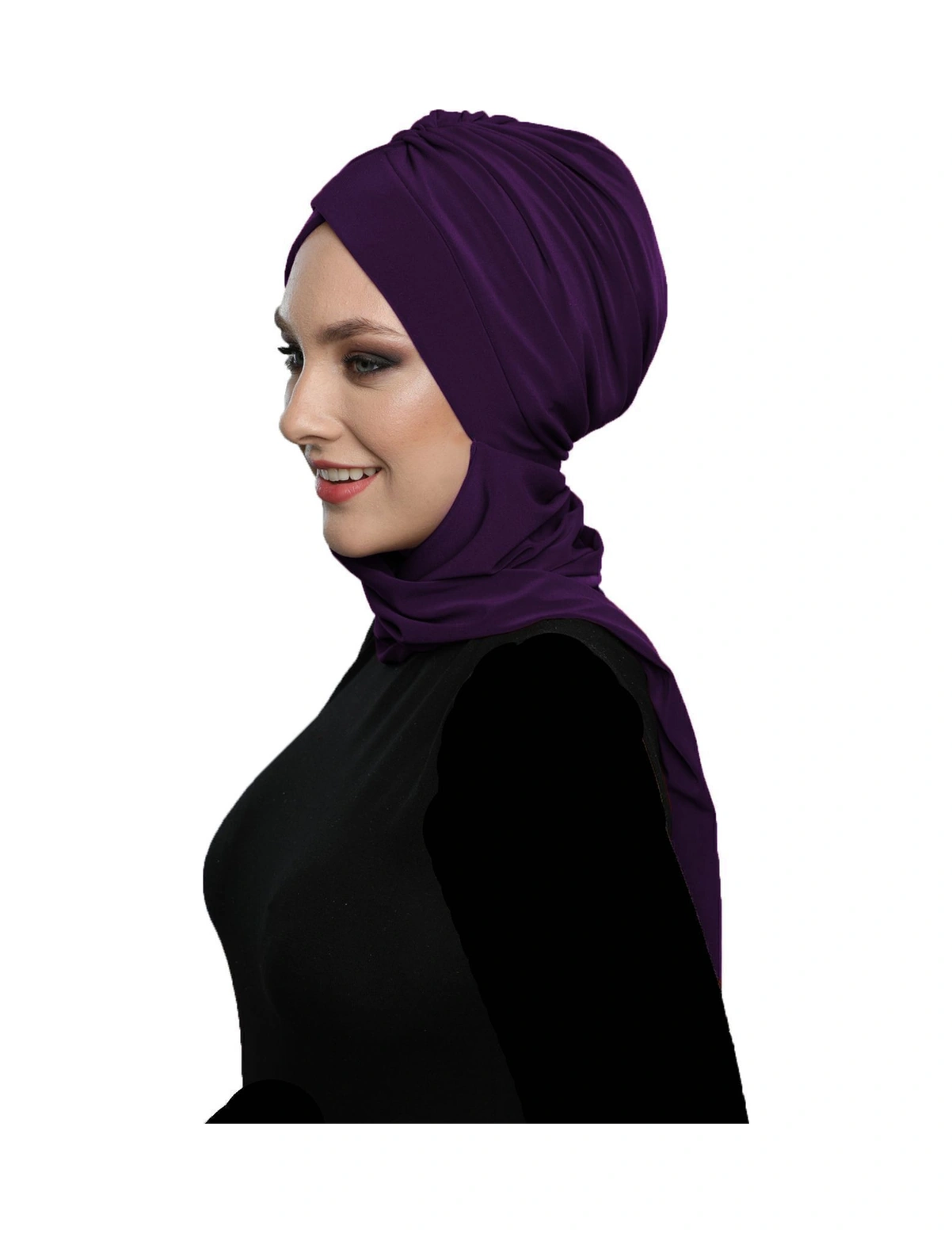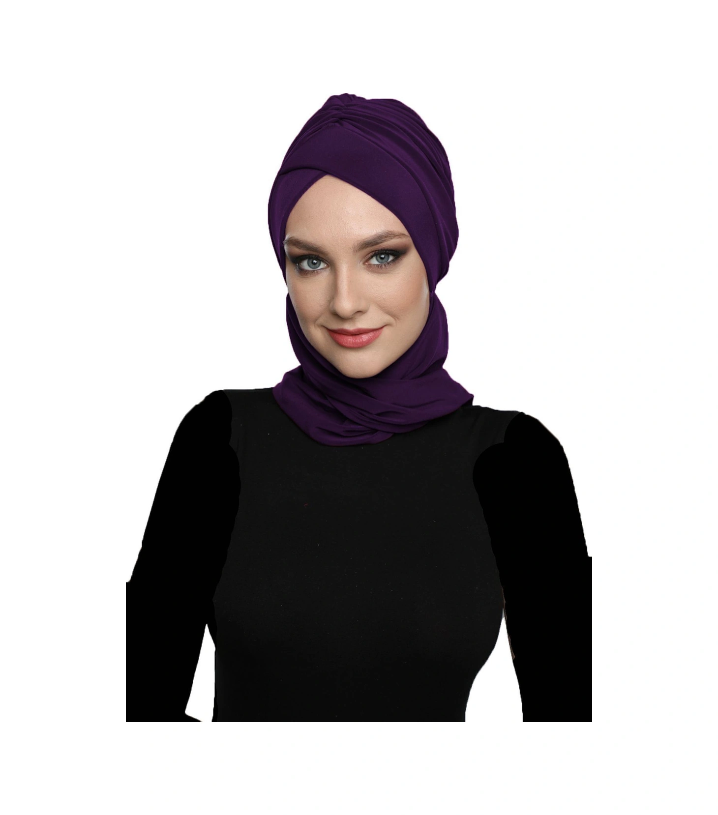 Kardelen Atkılı Astarlı Mor Hazır Türban Tesettür Havuz Ve Dış Bone Mor