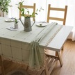 Kare Kafes İşlemeli Masa Örtüsü Saf Renk Pamuk Keten Püskül Dikdörtgen Sehpa Mat, Boyutu: 100x160cm Yeşil Yeşil