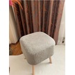 Kare Kesim Ahşap Ayaklı Teddy Kumaş Dekoratif Gri Renk Puf