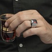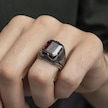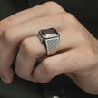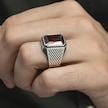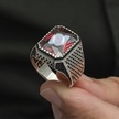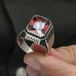 Kare Kırmızı Taşlı 925 Gümüş Erkek Yüzük