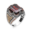 Erkek Yüzük 925 Ayar Kırmızı Taşlı Osmanlı Tuğralı Ve Armalı Gümüş Yüzük G714027