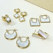 Kare Sedef Taşlı Çelik Küpe