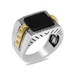 Kare Tasarım Siyah Oniks Taşlı Greek Desenli 925 Ayar Gümüş Erkek Yüzük