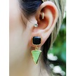 Kare Üçgen Modelli Kedigözü Cam Gold Kaplamalı Kadın Küpe Euku24sy Yeşil
