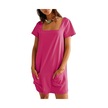 Kare Yaka Kısa Kollu Moda Kısa Etek Cep Günlük Elbise Gül Kırmızısı