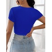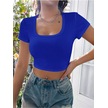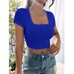Kare Yaka Mavi Renk Fitilli Kısa Kollu Slim Fit Crop Top Bluz