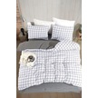 Kareli Beyaz Kolay Ütülenir Çift Kişilik Nevresim Takımı Baskılı