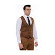 Kareli Desenli Kruvaze Kahverengi Erkek Yelek 001