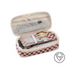 Kareli Kanvas Çift Fermuarlı Basit Büyük Kapasiteli Kalem Kutusu Kahverengi