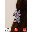 Karışık Renkli Taşlı Çiçek Gümüş Detaylı Metal Mandal Toka 4 Cm Çok Renkli