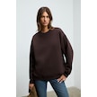 KARIUS Kadın Organik Pamuklu İçi Polarlı Oversize Yuvarlak Yakalı Koyu Kahverengi Sweatshirt