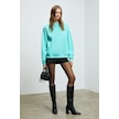 KARIUS Kadın Organik Pamuklu İçi Polarlı Oversize Yuvarlak Yakalı Mavi Sweatshirt