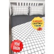 Karo Siyah Pamuklu Nevresim Takımı 120x200 Yataklar İçin Beyaz