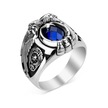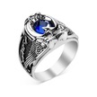 Kartal Figürlü Atatürk Imzalı Mavi Zirkon Taşlı Özel Tasarım 925 Ayar Gümüş Polis Yüzüğü