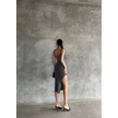 Kaşkorse Aşit Yıkamalı Yırtmaçlı Elbise Antrasit