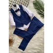 Katlama Detay Yelekli Rozetli Çocuk Takım Elbise Sax Saks Mavi
