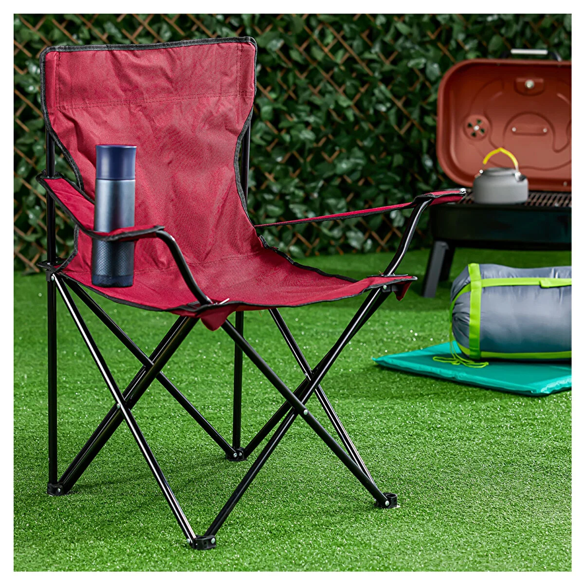 Katlanır Kamp Plaj Piknik Sandalyesi Taşıma Çantalı Bordo Renk Bordo