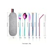 Katlanır Sofra 304 Paslanmaz Çelik Kore Bıçak Çatal Kaşık Çubuklarını Saman Taşınabilir Sofra Seti Seyahat Çubuklarını Gül Altın