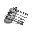 Katlanır Sofra 304 Paslanmaz Çelik Kore Bıçak Çatal Kaşık Çubuklarını Saman Taşınabilir Sofra Seti Seyahat Çubuklarını Siyah