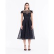 Kayık Yaka Tül Detaylı Simli Abiye-siyah Siyah
