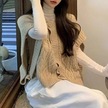 Kayısı Kore Şık Vintage Büküm Kolsuz Kazak Yelek Kadın Sonbahar Kış Örme Yelek Yelekler Kadın Düğme O Boyun Triko 29143 Kayısı