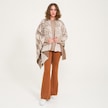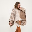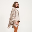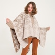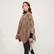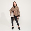 Kaz Ayağı Desen Çift Taraflı Triko Kadın Şal Panço-Kahverengi-140X140 Kahverengi