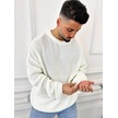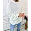Kazak Oversize Çift Kat Örme Naturel Pamuk Bol Kesim Tüylenmeyen Salaş Triko Kazak Beyaz