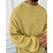 Kazak Oversize Çift Kat Örme Naturel Pamuk Bol Kesim Tüylenmeyen Salaş Triko Kazak Hardal