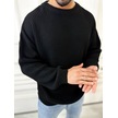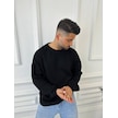 Kazak Oversize Çift Kat Örme Naturel Pamuk Bol Kesim Tüylenmeyen Salaş Triko Kazak Siyah