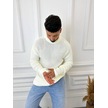 Kazak Oversize Çift Kat Zincir Örgü Naturel Pamuk Bol Kesim Tüylenmez Triko Kazak Beyaz