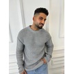 Kazak Oversize Çift Kat Zincir Örgü Naturel Pamuk Bol Kesim Tüylenmez Triko Kazak Gri
