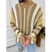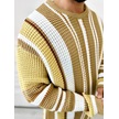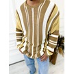 Kazak Oversize Renkli Örgü Desenli Naturel Pamuk Bol Kesim Salaş Triko Kazak Hardal