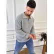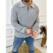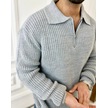 Kazak Oversize Tüylenmez Naturel Pamuk Fermuarlı Polo Yaka Örme Triko Kazak Gri