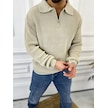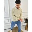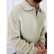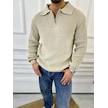 Kazak Oversize Tüylenmez Naturel Pamuk Fermuarlı Polo Yaka Örme Triko Kazak Krem