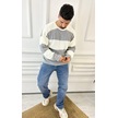 Kazak Oversize Tüylenmez Naturel Pamuk Örme Triko Kazak Gri