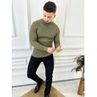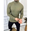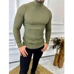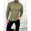 Kazak Slim Fit Tüylenmez Naturel Pamuk Triko Boğazlı Balıkçı Yaka Kazak Haki - Yeşil