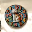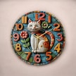 Kedi Çiçek Renkli Baskı Desenli Sayılı Hediyelik Ahşap Sessiz Tablo Duvar Saati 130 Renkli