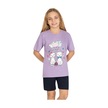 Kedili Kısa Kollu Kız Çocuk Pijama Takım Mor