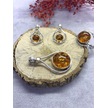 Kehribar Taşlı Gümüş Set 925 Ayar El İşi